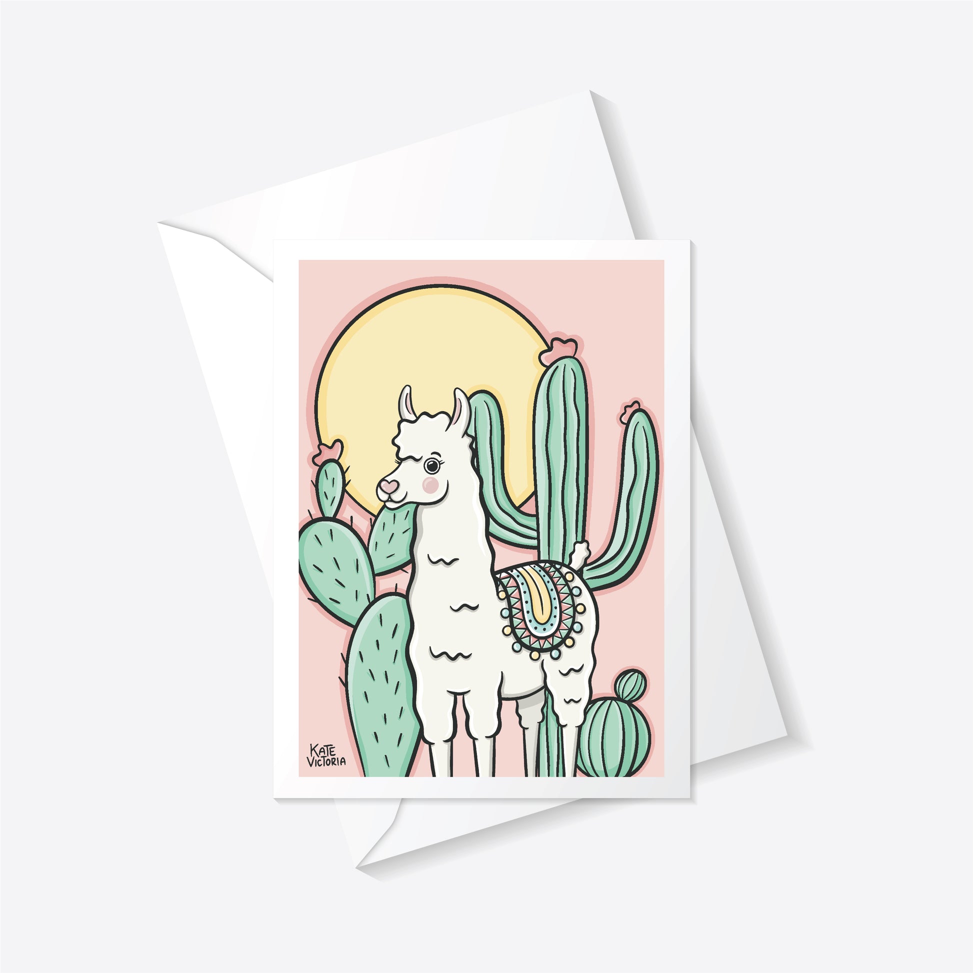 Llama Pink Greeting Card